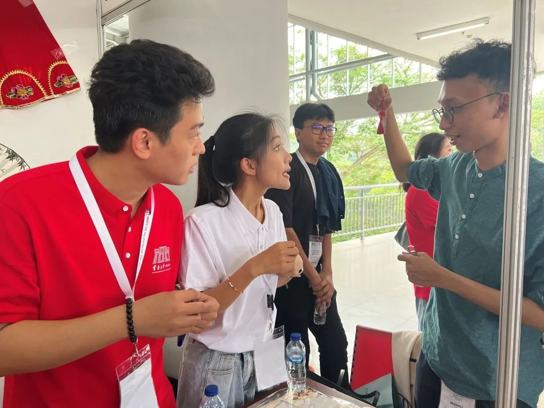 在活动开幕式上,谢欣彤同学与各青年代表团同学协作表演了声乐联唱、器乐合奏、舞蹈串烧等节目。在学术论坛上,谢欣彤同学还以“非艺术专业的同学如何传承和保护传统文化艺术”为题进行了互动交流。在艺术与文化集市中的中国展台,谢欣彤同学向国外青年展示了BV1946官方网站书签、明信片、纪念币、云大剪纸画等百年校庆系列文创产品。