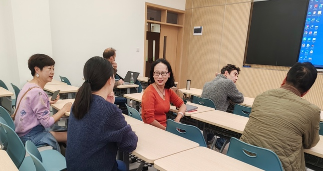 在研讨环节,法语教研室的老师们从个性化方案设计、PPT制作、讲授时长、板书比重及课程思政等方面提出了具体的建议,如进一步关注课堂教学的时政内容,增强时效性;增设“翻转课堂”环节,增加学生互动频次等。最后,教研室主任对本次磨课活动进行了总结,形成了活动纪要,作为后续教学提升的参考。