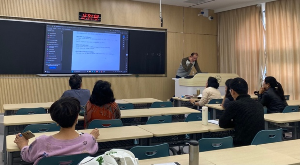 首先,解婷老师、外教François DUBOIS和Lee FOSSARD每人进行了20分钟的课堂教学展示。三位老师以OBE理念组织教学,引导学生主动思考,积极参与课堂教学。展示结束后,专家团队围绕教学目标的达成、课堂讲解的逻辑性、教学活动的设计效果等方面进行了细致和全面的点评,肯定了三位教师的专业能力。