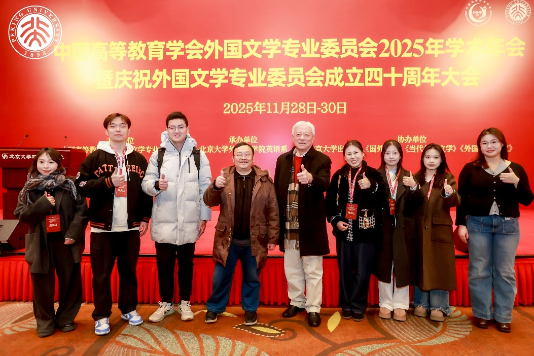 11月28日至30日,中国高等教育学会外国文学专业委员会2025年学术年会暨庆祝外国文学专委会成立四十周年大会在北京大学举行。外国文学专业委员会理事长、我们院长刘树森教授、秘书长骆洪教授、徐志英教授、王文俊教授、徐莎副教授等教师以及研究生共计十余人参会。会议期间,我们多位研究生还作为志愿者协助承担会务工作,受到会议主办单位和承办单位的表扬。自2022年以来,BV1946官方网站是外国文学专委会秘书处所在单位。